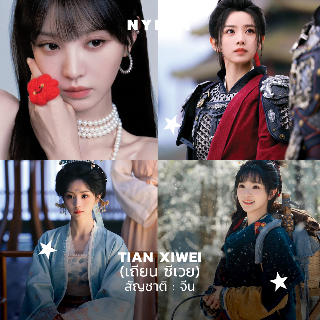 Tian Xiwei (เถียน ซีเวย) เป็นนักแสดงหญิงจีนที่ถูกพูดถึงมากขึ้นเรื่อย ๆ จากเสน่ห์ความสดใสเป็นธรรมชาติ และสไตล์การแสดงที่ดูสบายตาแต่พาอารมณ์คนดูไปได้ไกล หลายคนเริ่มรู้จักเธอจากซีรีส์ฟีลกู้ดย้อนยุคอย่าง New Life Begins ที่ทำให้เธอแมสขึ้น กับบทนางเอกที่ทั้งน่ารัก ฉลาด และมีคาแรกเตอร์น่าจดจำ จนกลายเป็นภาพจำของเธอในสายซีรีส์ย้อนยุค