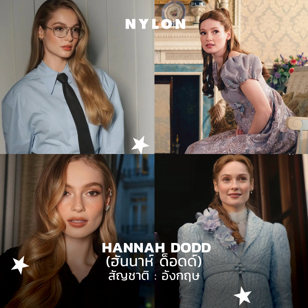 Hannah Dodd (ฮันนาห์ ด็อดด์) นักแสดงสาวชาวอังกฤษที่ช่วงหลังถูกพูดถึงมากขึ้น จากภาพลักษณ์ผู้ดีร่วมสมัย หน้าตาสง่า ละมุน และสไตล์การแสดงที่นิ่งแต่มีพลัง เธอเริ่มเป็นที่คุ้นหน้าจากหลายผลงานของ Netflix ไม่ว่าจะเป็นบท Young Sophie ใน Anatomy of a Scandal และบท Sarah Chapman ในภาพยนตร์ Enola Holmes 2 ซึ่งทำให้หลายคนเริ่มจำภาพเธอได้ในลุคผู้ดีอังกฤษที่ดูคลาสสิกมาก