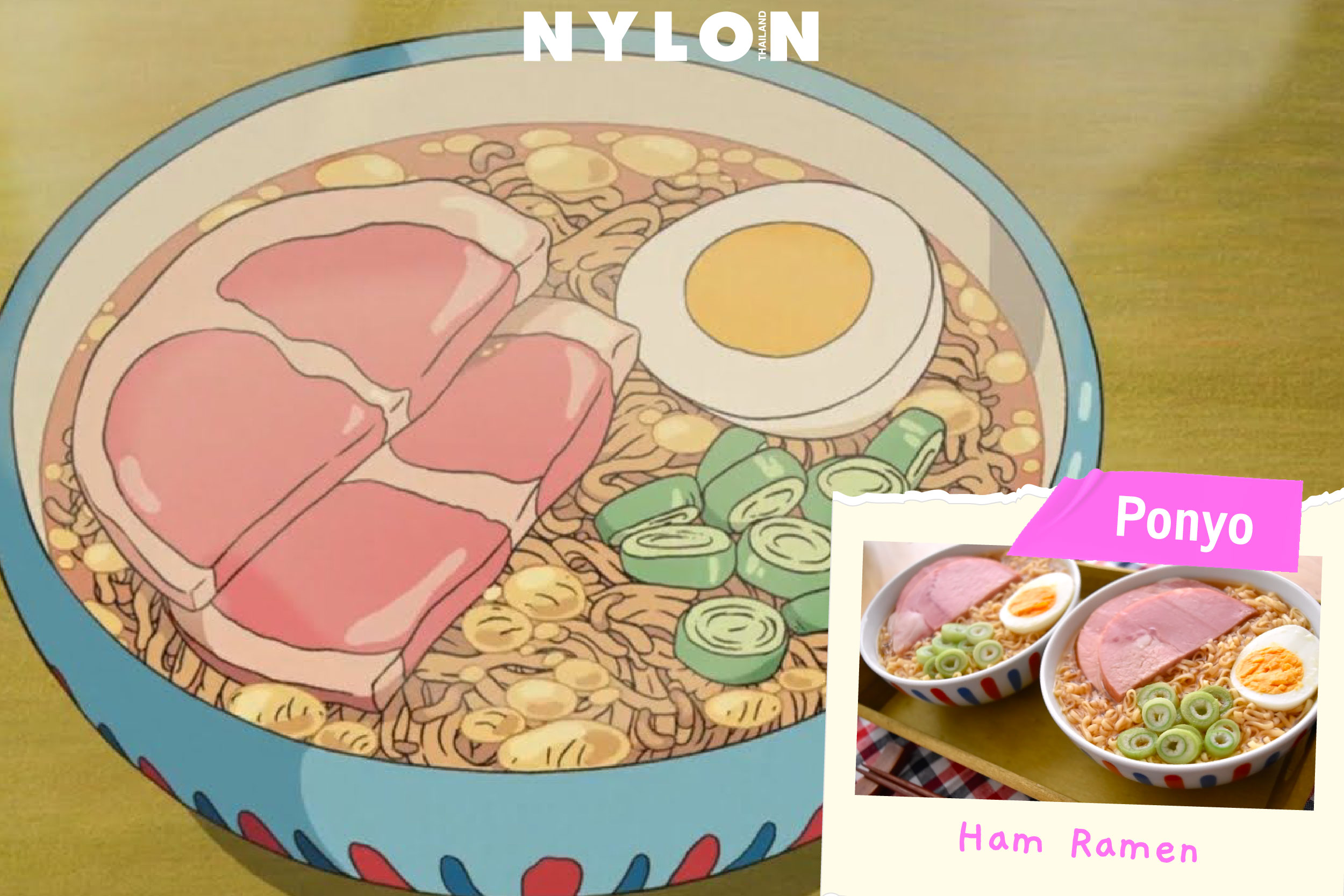 แน่นอนว่าไม่มีข้อยกเว้นสำหรับ Studio Ghibli ซึ่งถึงแม้ว่าหน้าจอจะไม่สามารถส่งกลิ่นหอม แต่เชื่อสิว่ามีหลายต่อหลายครั้งที่เราเผลอกลืนน้ำลายให้ภาพเหล่านั้น และอยากลองชิมอาหารจากการ์ตูนเรื่องโปรด ไม่ว่าจะเป็นเมนูราเมงธรรมดาๆ จาก Ponyo หรือเมนูเบค่อนและไข่ดาว จาก Howl’s Moving Castle จินตนาการไปว่าอาหารหน้าตาเป็นแบบนี้ กลิ่นก็คงจะหอมประมาณนี้ รสชาติจะอร่อยสักแค่ไหนนะ